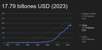 Ese crecimiento en producción se traduce naturalmente en un colosal volumen de exportaciones hacia todo el mundo. Su principal foco de exportación es la tecnología. Y ¿dónde está el futuro de este planeta?, en la tecnología. ¿Y qué es lo que da más poder?, la información. ¿Y quién controla la información?, el que controla la tecnología. Tecnología igual a poder.