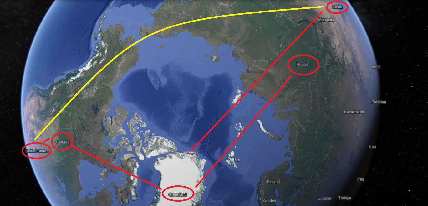 ¿Qué tienen en común el Canal de Panamá, Groenlandia o Canadá?, lo que él llama «temas de seguridad nacional». Y es que el Canal de Panamá actualmente es clave en el comercio entre China y Estados Unidos, tanto por el cobro de las tarifas como por el control de paso de la mercadería. Por su parte, Groenlandia actualmente ha dejado de ser solo un gran bloque de hielo donde viven no más de 56,000 personas, para pasar a ser un enclave de interés mundial. ¿Y por qué ahora Groenlandia tiene tanta relevancia? Pues básicamente por dos motivos. El primero, es que ese «invento Woke» del cambio climático, como podría perfectamente decir Donald Trump, ha generado que la extensión mínima de hielo marino en el Ártico haya disminuido en aproximadamente un 40-50% desde 1979. ¿Y qué supone esto? Que ahora Groenlandia es un lugar perfecto para nuevas exploraciones de petróleo, gas natural y mineral. El segundo punto relevante es su geolocalización. Groenlandia está ubicada cerca de las rutas de navegación del Ártico que se están abriendo debido al calentamiento global. A medida que el hielo marino se reduce, las rutas marítimas del Ártico se hacen más transitables, lo que reduce los tiempos de navegación entre Europa, América del Norte y Asia; de igual manera alberga la base aérea de Thule (la base más al norte de EE. UU.), que es una instalación clave para la defensa militar. Thule juega un papel importante en la detección de misiles balísticos, ya que se encuentra estratégicamente situada para monitorear la actividad militar en el Ártico y el norte de Europa (entiéndase Rusia). Nota importante: un misil balístico lanzado desde Groenlandia podría, en teoría, llegar hasta China y, por tanto, también hasta Rusia.